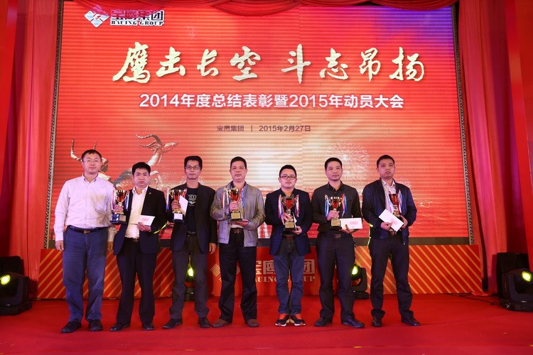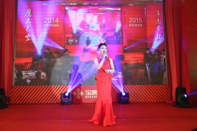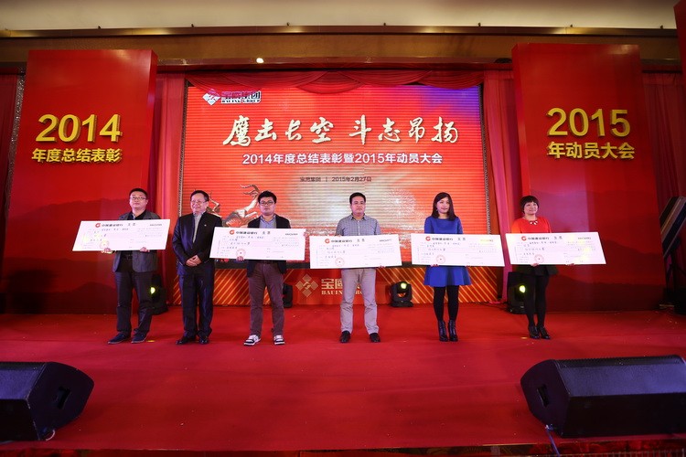 隨后,伴著喜慶的音樂,寶鷹集團監事會主席胡蘭萍宣讀了 2014 年寶鷹集團表彰決定,寶鷹集團諸領導分別為 2014 年度寶鷹集團優秀員工、優秀項目經理、優秀項目部、優秀部門經理、先進集體及最高年終獎獲得者頒獎。在發表獲獎感言時,各位代表皆同觀眾一起分享自己的喜悅、分享自己的工作經驗,表示將一如既往的努力不懈,為寶鷹做出更大貢獻。