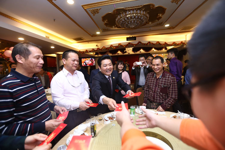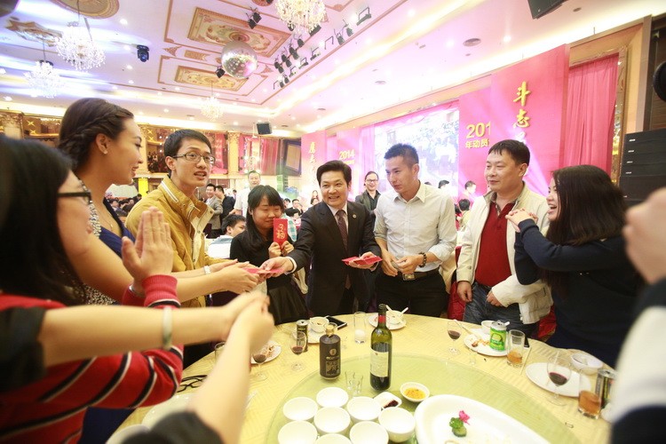 寶鷹集團董事局主席古少明在講話中深情表達了對寶鷹集團同仁在 2014 年努力工作的謝意,并強調 2014 年寶鷹集團的成績是所有寶鷹人團結一致、共同努力的結果。古少明主席亦對寶鷹集團在 2015 年的發展寄予厚望,進一步提出了對 2015 年工作的新要求,動員大家在 2015 年為新的夢想奮斗不止。最后,古少明主席在致辭完畢后和諸位領導、嘉賓一起舉起了酒杯,共同祝福大家新年快樂,羊年大吉!祝酒完畢后,古少明主席神秘地宣布要為現場所有人員派發新春紅包,送上新年祝福。