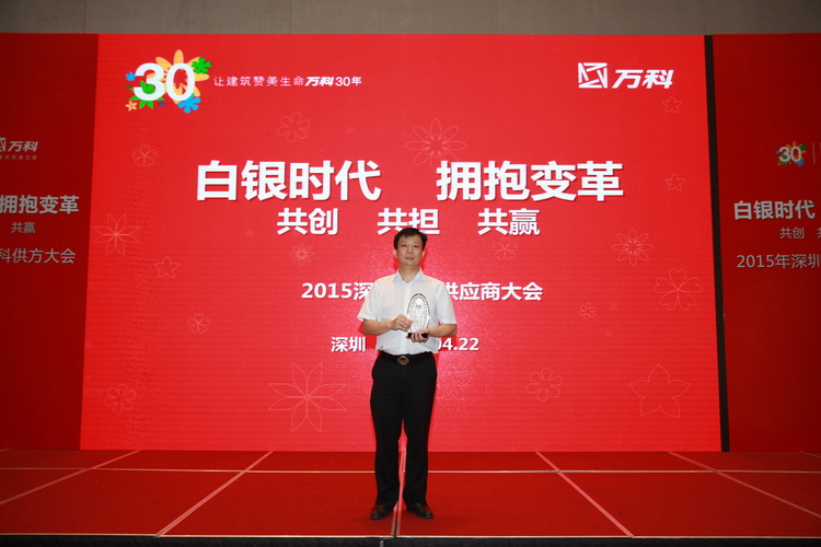 4月22日,2015年深圳萬科供方大會于深圳前海企業公館隆重召開,寶鷹集團工程管理四部副總經理陳東才出席大會并代表寶鷹集團領取了深圳萬科2014年優秀供應商銀獎。