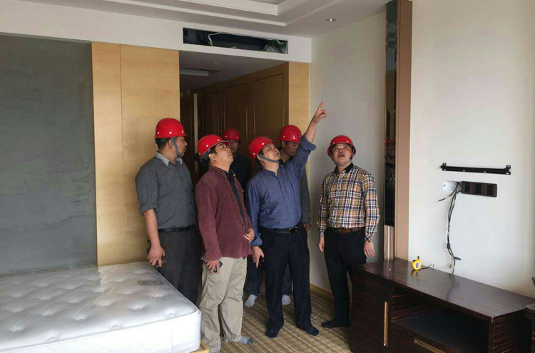 在聽聞了劉鎮波副總裁在江西樟樹開元名都大酒店項目部的工作情況后,寶鷹集團副總裁于4月26日也來到了該項目現場,參觀了已經裝修完成的江西樟樹開元名都大酒店樣板間,并與劉鎮波副總裁充分交流了加強建設質量管控和促進安全文明施工的相關措施。