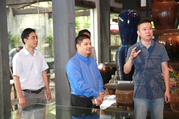 陳育宏副董事長在向古樸副總裁一行介紹辦公空間的設(shè)計風格