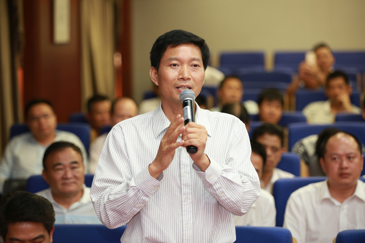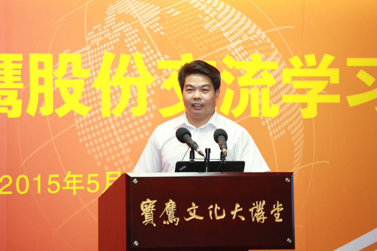 考察團一行之后于寶鷹文化大講堂與寶鷹股份領導舉行了互動交流會,董事會秘書鐘志剛主持會議,古少波董事長做了以“一帶一路”和“互聯網+”戰略的踐行者的主題演講,古少明主席回答了考察團成員提出的若干問題。