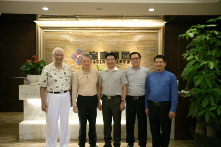 合影(左二為印尼INTILAND地產(chǎn)集團(tuán)董事長吳端華、左一為印尼熊氏集團(tuán)董事長熊德龍、右二為新加坡國泰中亞資本集團(tuán)董事吳端平、中為寶鷹集團(tuán)董事局主席古少明、右一為寶鷹股份董事副總裁古樸)