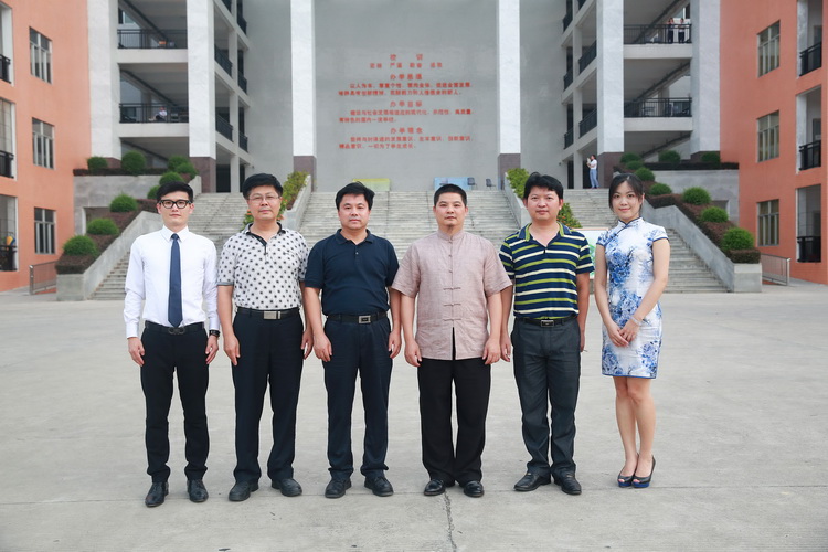 合影留念(右三為古樸副總裁、左三為溫俊義校長、左二為韋英煒副校長、右二蘇明龍副校長、左一為吳義課助理、右一為賴穎芝主任)