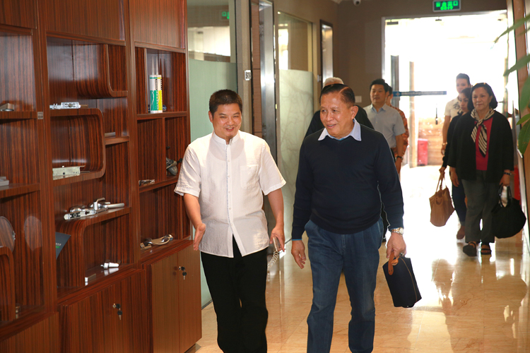 勒邦先生在古樸副總裁的引導(dǎo)下參觀寶鷹集團(tuán)總部