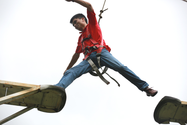 高空挑戰(zhàn)項(xiàng)目旨在通過(guò)完成8米高空中的斷橋跨越,讓學(xué)員學(xué)會(huì)克服內(nèi)心恐懼,深化對(duì)自己的認(rèn)識(shí),激發(fā)自身潛力,突破自我極限,并學(xué)會(huì)相信他人,感受來(lái)自團(tuán)隊(duì)的鼓勵(lì)。