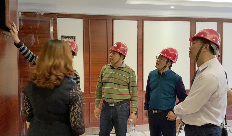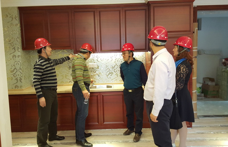 古少波董事長(zhǎng)一行查看裝飾施工中的樣板間