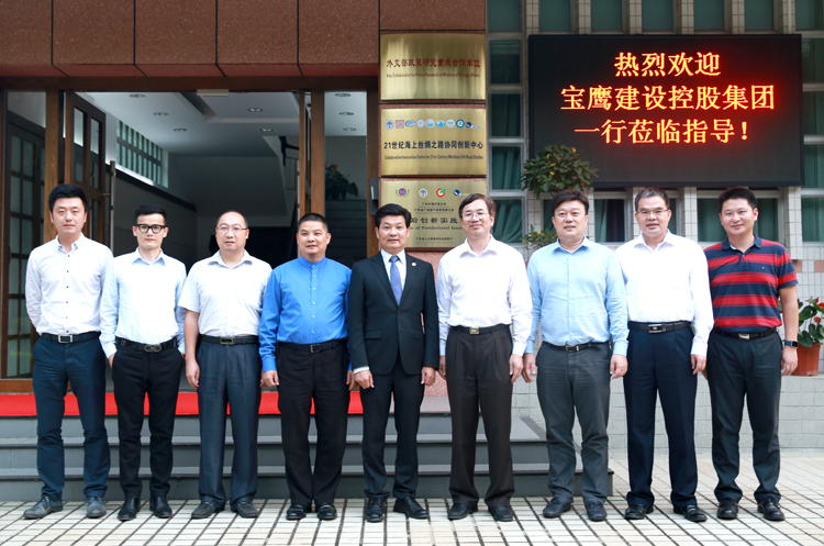 10月15日,寶鷹集團董事局主席古少明、董事副總裁古樸、總裁助理吳義課、文化品牌部總經理董賓一行應邀赴廣東外語外貿大學考察并洽談校企合作事宜。