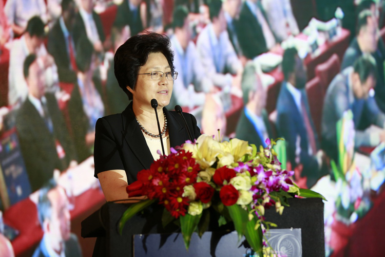 ▲中國著名電視節目主持人、陽光媒體集團主席和陽光文化基金會主席楊瀾主持高端論壇