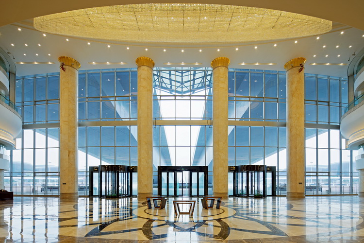 武漢國際博覽中心會(huì)議中心位于武漢國際博覽中心會(huì)展區(qū)和酒店區(qū)中間,為一座造型新穎、結(jié)構(gòu)復(fù)雜、科技含量高的建筑。每個(gè)展廳長140米、寬72米,6個(gè)展廳連為一體,總面積達(dá)到6.5萬平方米,均為大跨度無柱展廳。即在6.5萬平方米、高20多米的房子中間,找不到一根柱子。這在國內(nèi)極為罕見,焊接工藝誤差以毫米計(jì)。寶鷹集團(tuán)承建了會(huì)議中心 1-5 層室內(nèi)精裝修工程和室內(nèi)外標(biāo)識(shí)系統(tǒng)。本工程以國際水準(zhǔn)的設(shè)計(jì)理念、高超精湛的施工工藝獲得了業(yè)主和社會(huì)的廣泛好評,曾獲得全國建筑工程裝飾獎(jiǎng)(公共建筑裝飾類)、武漢市建筑工程“黃鶴獎(jiǎng)”金獎(jiǎng)和湖北省優(yōu)質(zhì)建筑裝飾工程“楚天杯”獎(jiǎng)。