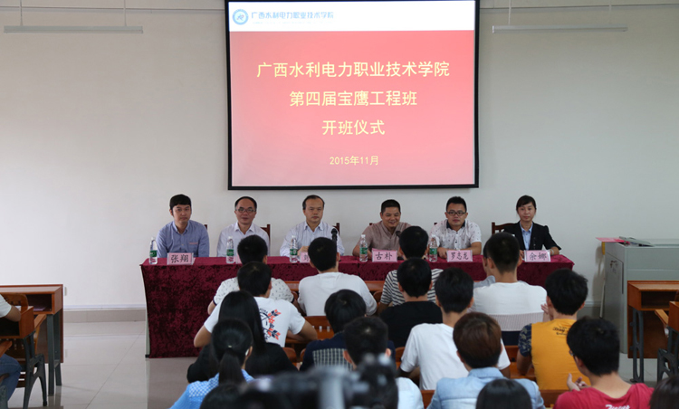 11月23日,廣西水利電力職業技術學院第四屆寶鷹工程班開班儀式在寶鷹建筑實訓中心隆重舉行。廣西水利電力職業技術學院院長劉延明,寶鷹集團董事副總裁古樸、總裁助理羅志龍等出席了開班儀式,建筑工程系教師代表、“寶鷹工程班”84名學生參加了開班儀式。