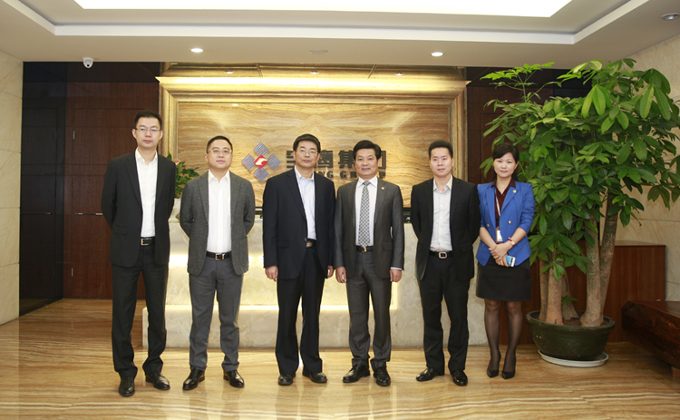 ▲合影(左三:姚玉平副行長;右三:古少明主席;左二:肖東良支行長;左一:鄧殷毅總經(jīng)理;右二:鄭鐵軍副總經(jīng)理;右一:羅秋園總經(jīng)理。)