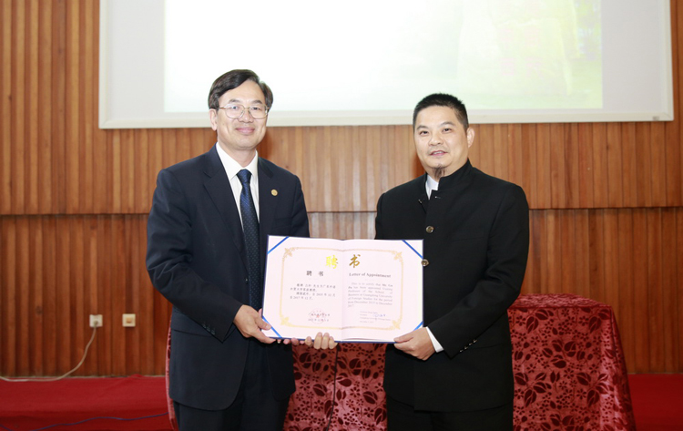 講學開始前,何傳添副校長在廣外商學院眾師生的見證下將廣東外語外貿大學頒發的聘書授予古樸副總裁,正式聘任古樸為廣外客座教授。由此,寶鷹集團和廣東外語外貿大學的校企合作又上新臺階。