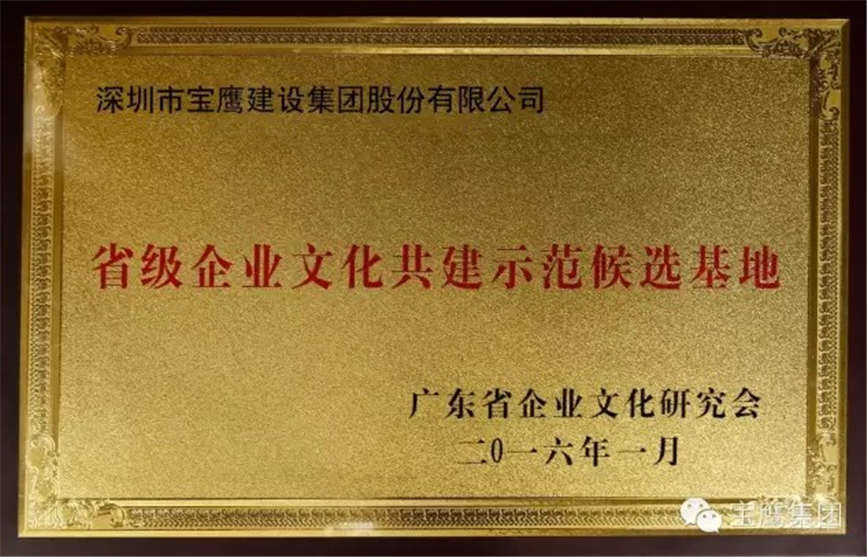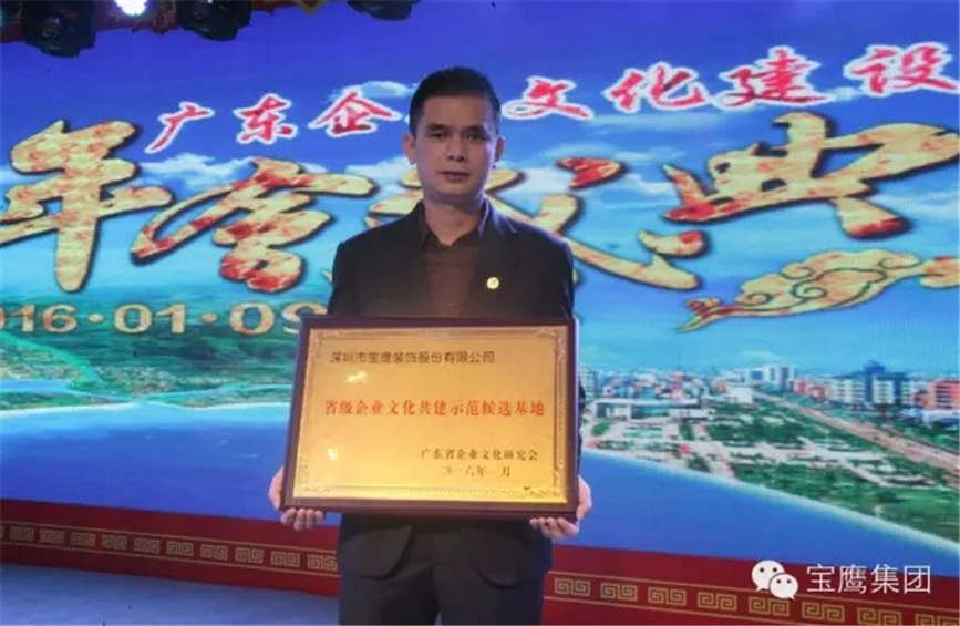 ▲寶鷹集團獲得廣東省省級企業文化共建示范候選基地榮譽稱號