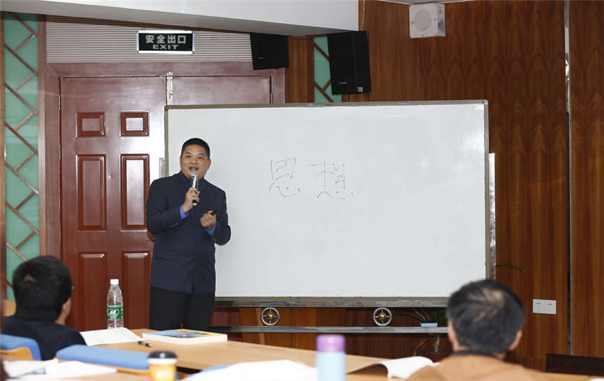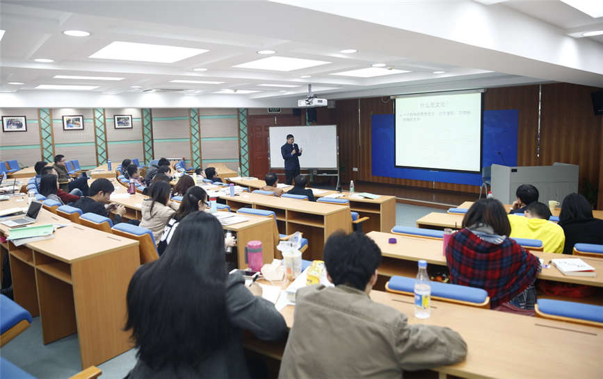 授課過程中,古樸教授結合中外文化名人事跡、個人學習心得,并結合自己在企業發展過程中如何將文化與企業相結合的生動案例,風趣幽默地跟大家分享了人生文化感悟。2014年,印尼《國際日報》刊登古樸教授觀點:曇花一現似乎好景不長,有幾分悲傷。但在人生旅途中,人與地球相比,可稱彈指一揮間。曇花雖然一現,但美麗無限。借此,古樸教授通過對曇花一現的新釋,勉勵大家珍惜時間,讓自己的人生綻放出最美的煙火;他又以觀摩周國城創作蘭花的過程,告誡大家功夫修行必須持之以恒;他還與學子們分享了文懷沙先生做客“寶鷹講堂”開講時對愛情的獨到見解,希望大家能心存大愛。