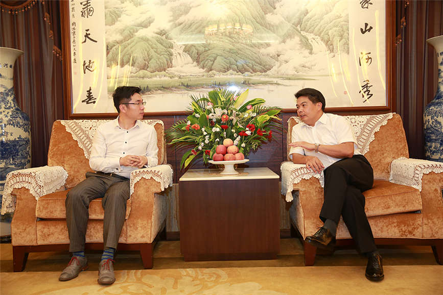 ▲古少波董事長與央視主播鄭峻峰暢談“一帶一路”戰略