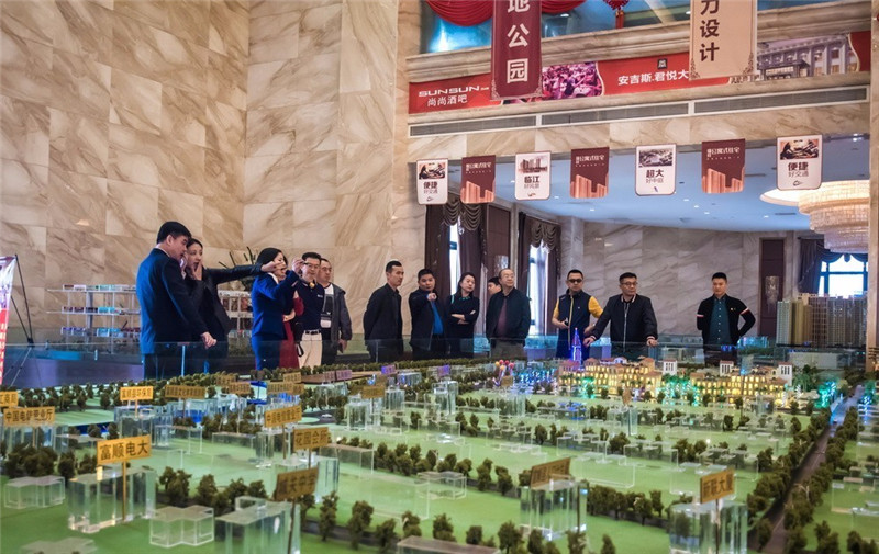 ▲古樸副總裁在項目建設方的陪同下參觀瑞祥商貿城售樓中心(右八:古樸副總裁;右七:四川紅瑞祥置業有限公司總經理楊立強。)