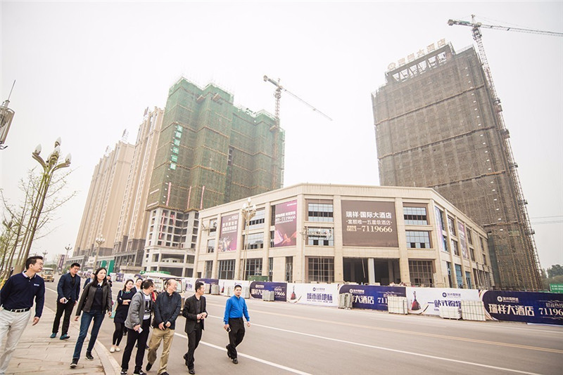 ▲古樸副總裁在四川紅瑞祥置業有限公司總經理楊立強(右三)等領導陪同下參觀項目現場