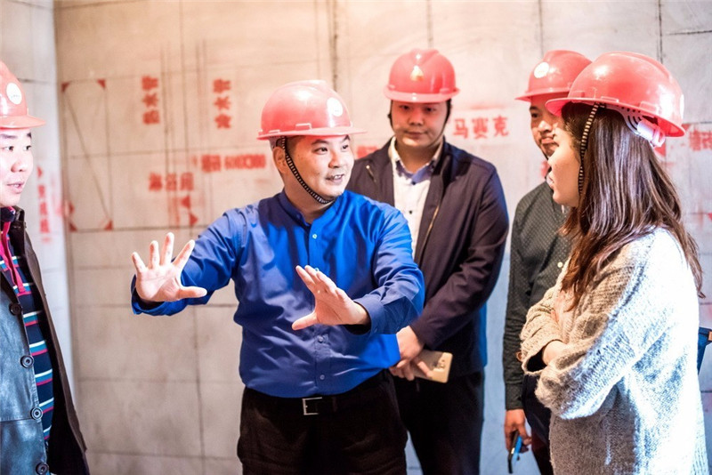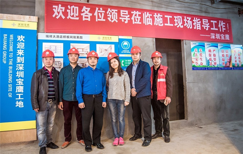 隨后,古樸副總裁在項目經理卞亮的帶領下,視察了瑞祥大酒店樣板間裝飾現場的天花吊頂、管線鋪設、裝飾放線等多個施工過程中的施工工藝和施工質量,并就裝飾施工中的技術問題認真和項目部工作人員現場交流。古樸副總裁強調:裝飾施工中的施工質量和安全施工是并行不悖的兩大關鍵問題,所有項目部工作人員都應該做到警鐘長鳴,向細心要安全,向認真要質量,要持續發揚寶鷹工匠精神,精益求精,專心致志,一絲不茍,為公司交上滿意的答卷,為客戶交上滿意的答卷。