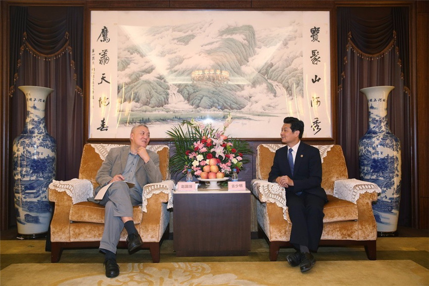▲趙國屏院士與古少明主席親切交談