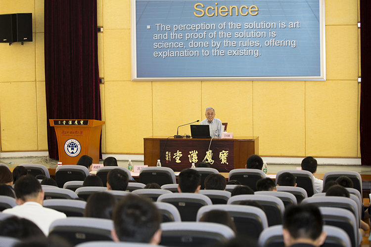 隨后,王兆凱院士開講《數學、科學、工程與工業創新》。講座中,王兆凱院士先通過對數學、科學、工程與工業的精確定義,并闡述各個學科之間關聯,帶領大家回顧社會發展過程中各學科的相互推進,指出了部分學生在求知過程中的誤解。王兆凱院士認為:數學是可證的,并可用多種方式來進行求證;科學是客觀存在的,無需驗證但一直在改進,數學在社會發展到一定階段后才與科學產生了聯系;科學用于人工便是工程,工程匯聚形成工業。