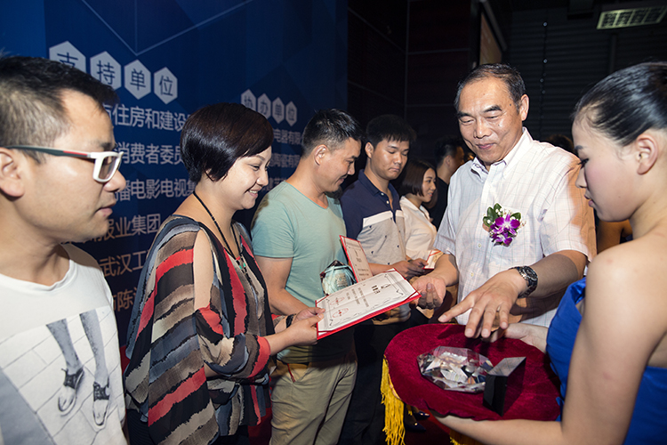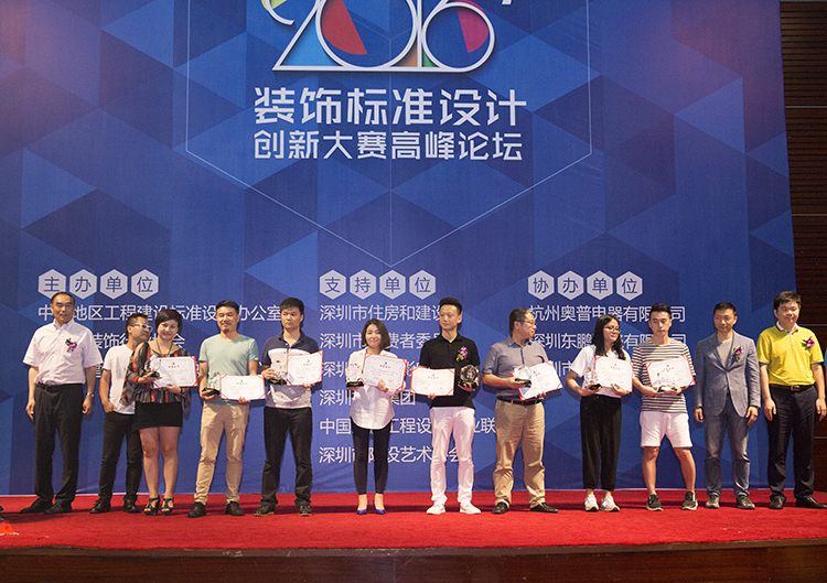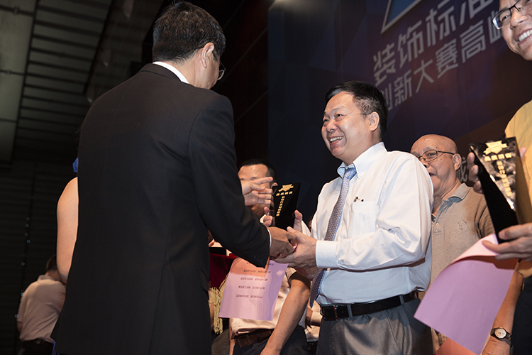 獲獎(jiǎng)?wù)哳I(lǐng)取“中南標(biāo)2016年裝飾標(biāo)準(zhǔn)設(shè)計(jì)創(chuàng)新大賽”獲獎(jiǎng)證書和獎(jiǎng)杯