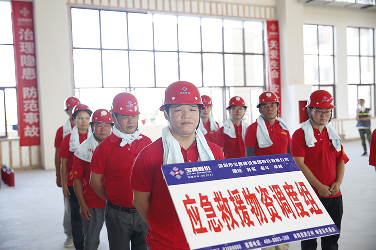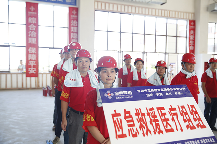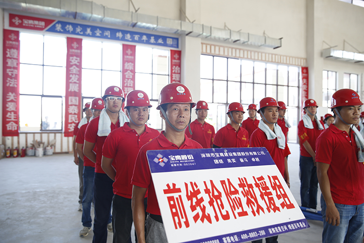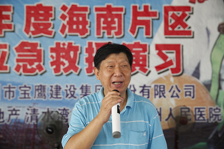 為響應寶鷹集團攜手雅居樂地產“共建安全發展品質年,共創和諧魅力清水灣”活動,近日,由質安管理部和工程六部組織的2016年度海南片區綜合應急救援演習于寶鷹集團雅居樂北大雙語學校項目部體育館內正式舉行。此次應急救援演習的參與者主要來自寶鷹集團海南片區的三亞紅樹林酒店項目部、三亞金沙國際酒店項目部、清水灣雅樂居項目部、海南分公司其他項目部及北大雅居樂雙語學校、雅居樂地產海云區域公司等單位。寶鷹集團總裁成湘文,寶鷹集團副總裁、總工程師王建國以及各項目部代表參加了此次演習。
