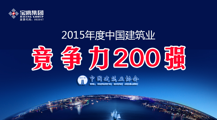 2015年度中國建筑業雙200強企業評價結果日前揭曉,寶鷹集團入圍競爭力200強企業。