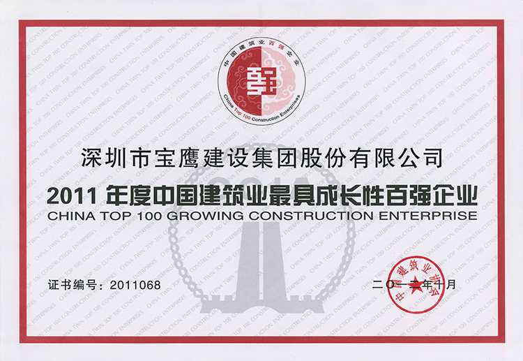 寶鷹集團連續五年榮獲“中國建筑業最具成長性企業”榮譽
