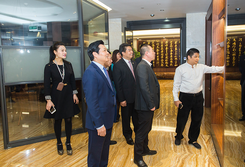 林鋼捷代市長一行在古少明主席的陪同下饒有興致地參觀了寶鷹集團辦公環境和寶鷹美術館,并向寶鷹集團及古少明主席帶來普寧市委市政府的新年問候和期望。
