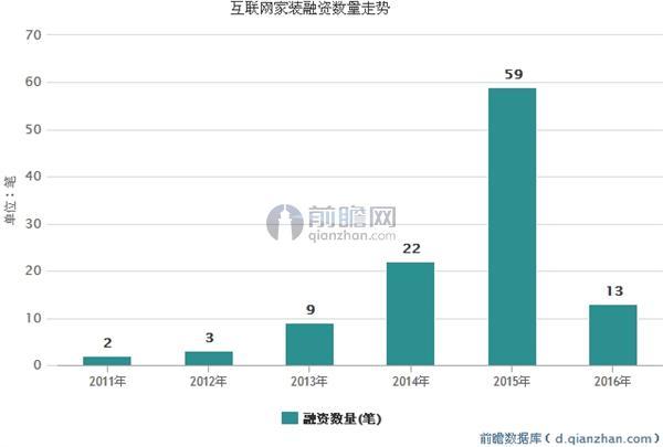 自2014年以來,消費升級加速了家裝行業(yè)與互聯(lián)網(wǎng)的融合,各路資本搶灘登陸,投資浪潮風(fēng)起云涌。2015年融資累計超過59筆,資本市場整體表現(xiàn)火熱,進入2016年,整個市場表現(xiàn)更為冷靜,呈逐漸降溫趨勢,截至目前融資數(shù)量僅13筆。